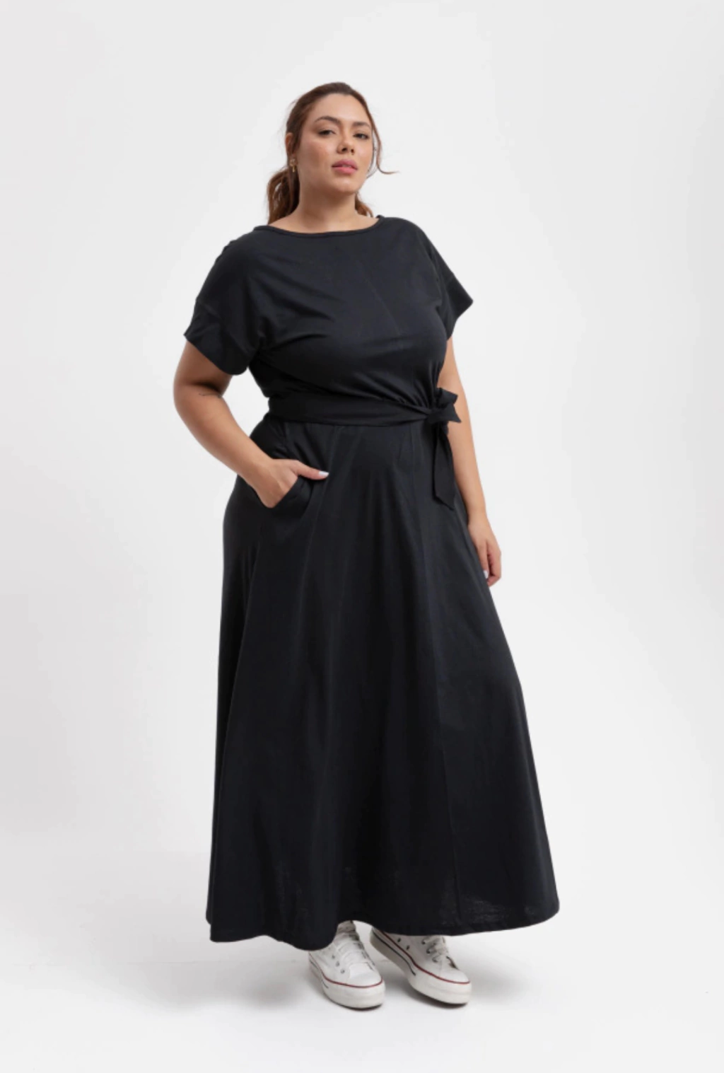 O Vestido Clara Nunes é daqueles que encantam no primeiro olhar. Com modelagem evasê, comprimento longo e cintura marcada com cinto removível, ele traz um visual feminino, fluido e pronto para te acompanhar em diversas ocasiões, do dia a dia às mais especiais.
